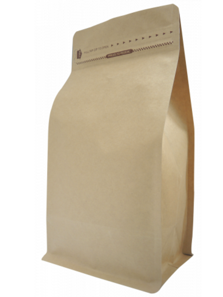 500G BOX BOTTOM BAG WITH ZIP AND REAR VALVE, NATURAL KRAFT